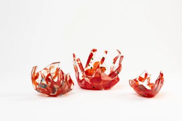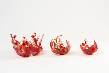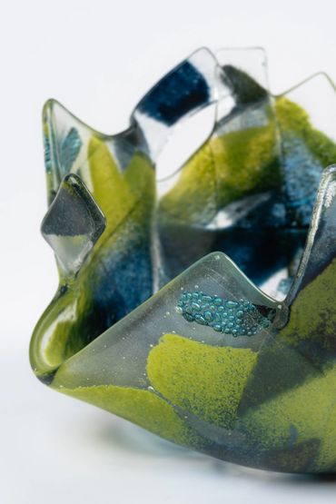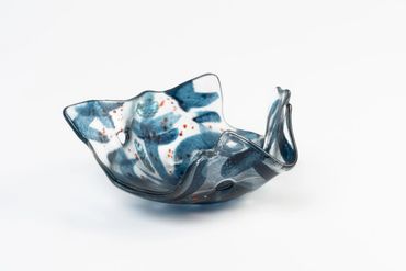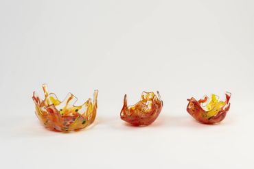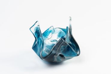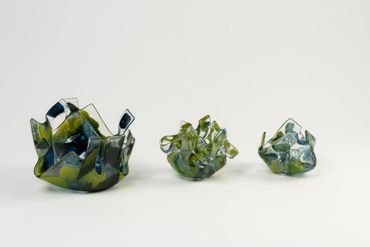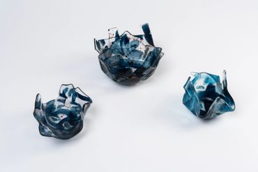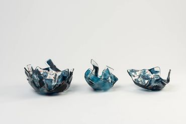 For my final degree show, I wanted to create a product that promotes the skills I have acquired during the last three years. Inspired by nature, particularly the River Wye, I intended to create art that encompasses light, colour and movement. I wanted my bowls to be in “family” groups of different sizes to express the changing water I see flowing outside my window each day. Each surface is hand painted and layered to construct organically shaped bowls that are aesthetically pleasing, tactile, and functional.